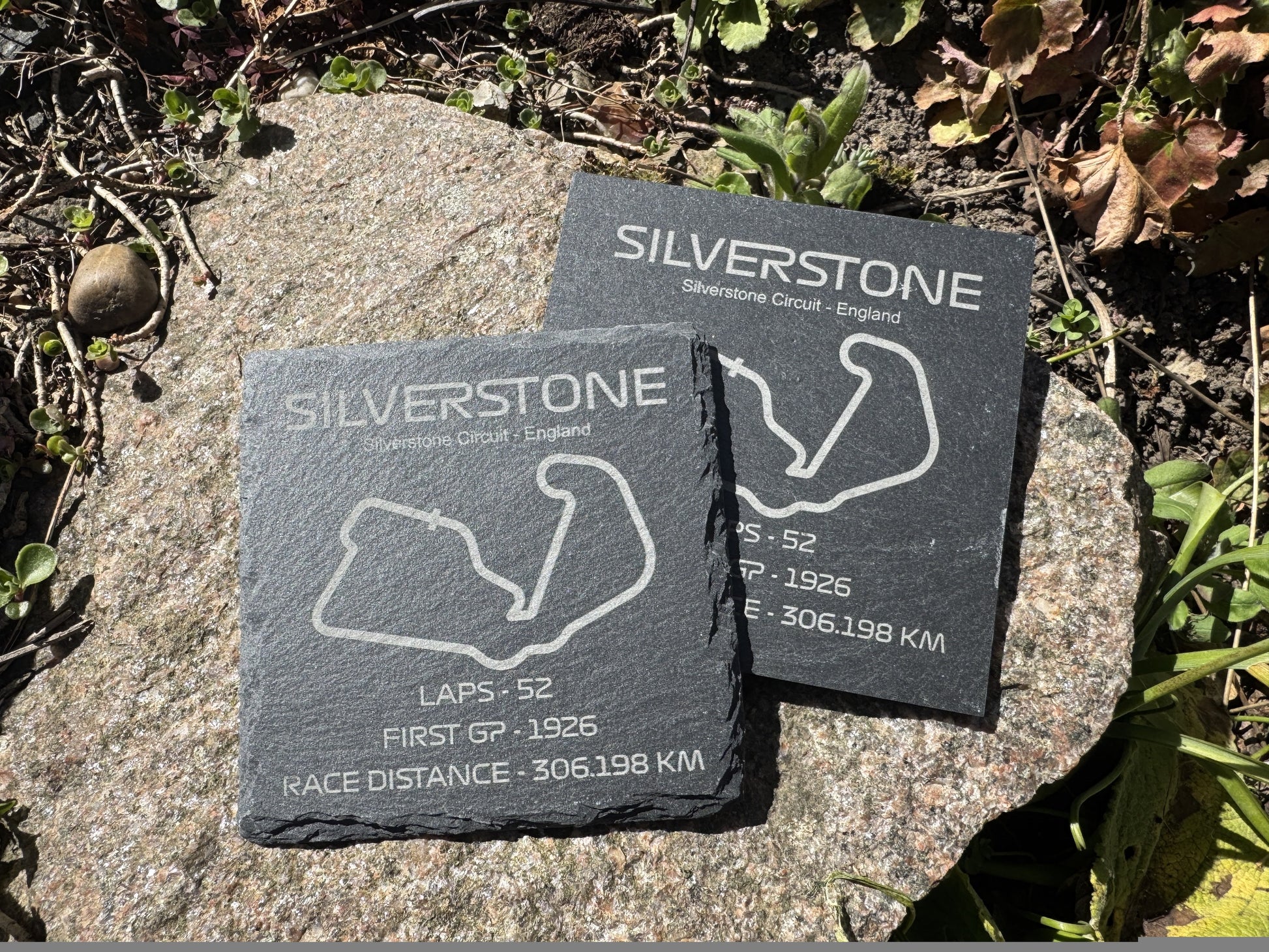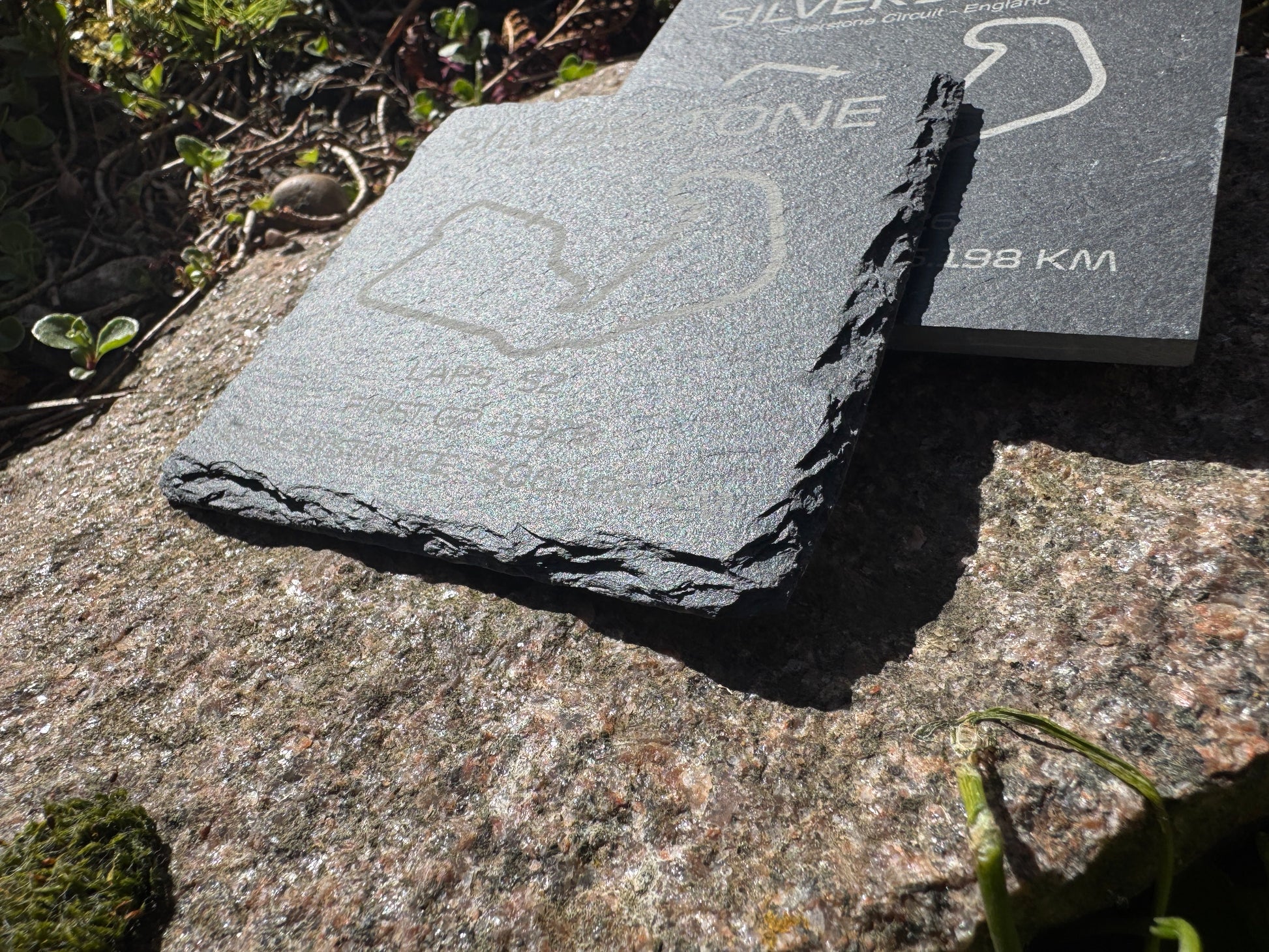 Protect your surfaces with the world's most iconic racing circuits, etched in natural slate.